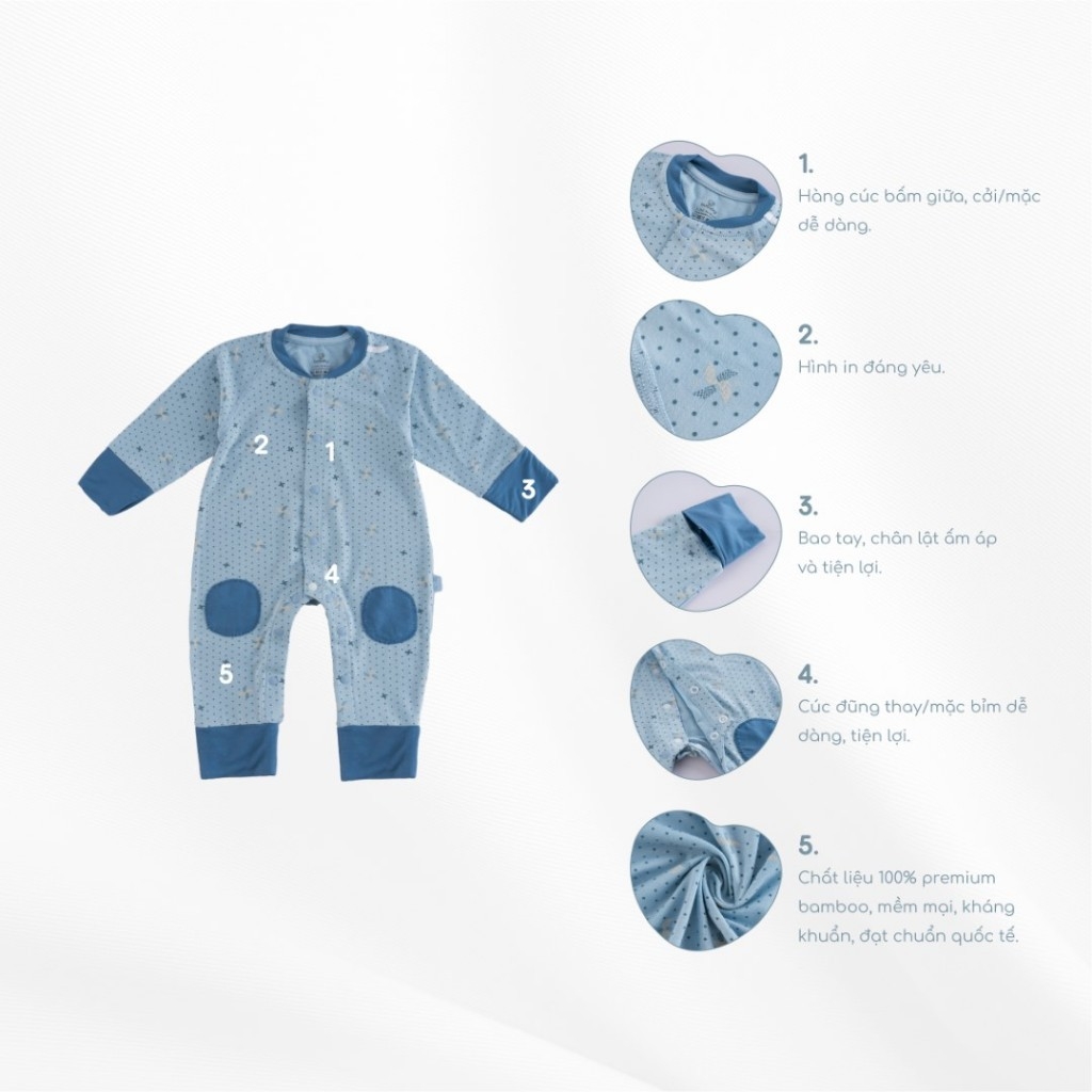 BU Baby sơ sinh - BBB210206 Body dài tay cài giữa Gami cho bé sơ sinh |Quần áo BU chính hãng Body dài tay cài giữa Gami với thiết kế hàng cúc bấm giữa, cởi/mặc dễ dàng và hình in đáng yêu. Cùng bao tay, chân lật ấm áp và tiện lợi. Cúc đũng thay/mặc bỉm dễ dàng, tiện lợi. Chất liệu 100% premium bamboo, mềm mại, kháng khuẩn, đạt chuẩn quốc tế. Thông tin chất liệu: Chất liệu vải tre siêu mềm mại và an toàn, lý tưởng cho da nhạy cảm. Khả năng chống dị ứng, kháng khuẩn, kháng nấm tự nhiên; khả năng điều hòa thân nhiệt. Sản phẩm của BU Baby tuyệt đối an toàn với trẻ nhỏ và thân thiện với môi trường. Sản phẩm đạt chứng nhận EOKO-TEX 100 (Class 1). 🌿 NEW COLLECTION CÙNG CON ĐÓN THU SANG Bảng size tham khảo khi đặt hàng Newborn [3-4KG] 1-3M [4-5,9KG] 3-6M [5.5-7,5Kg] 6-9M [7-9Kg] 9-12M [8.5-10Kg] 12-18M [9.5-11Kg] 18-24M [10.5-12.5Kg] 2-3Y [12-14,5Kg] 3-4Y [14-16,5Kg] 4-5Y [16-23Kg] - HƯỚNG DẪN BẢO QUẢN VÀ SỬ DỤNG: Lộn trái sản phẩm khi giặt, giặt với sản phẩm cùng màu. Ưu tiên giặt tay, bóp nhẹ để loại bỏ nước và không vắt/vặn sản phẩm để tránh sợi bai dão. Nếu sử dụng máy giặt, sử dụng nước lạnh ở chế độ nhẹ nhàng Bạn nên cài lại mọi khuy, cúc và khóa kéo để tránh xù. #bu baby #bubaby #bubabybetrai #bubabybegai #bubabysiro #bubabymuahe #quanaomuahechobe #quanaochobememmat #quanaobetrai #quanaobegai #nous #vaáioitre #quanaovaisoitre #bubabychinhhang #bubabyofficial #bubabystore #bubabyofficialstore #bubabyvietnam #bubabymall #bubabyhanoi