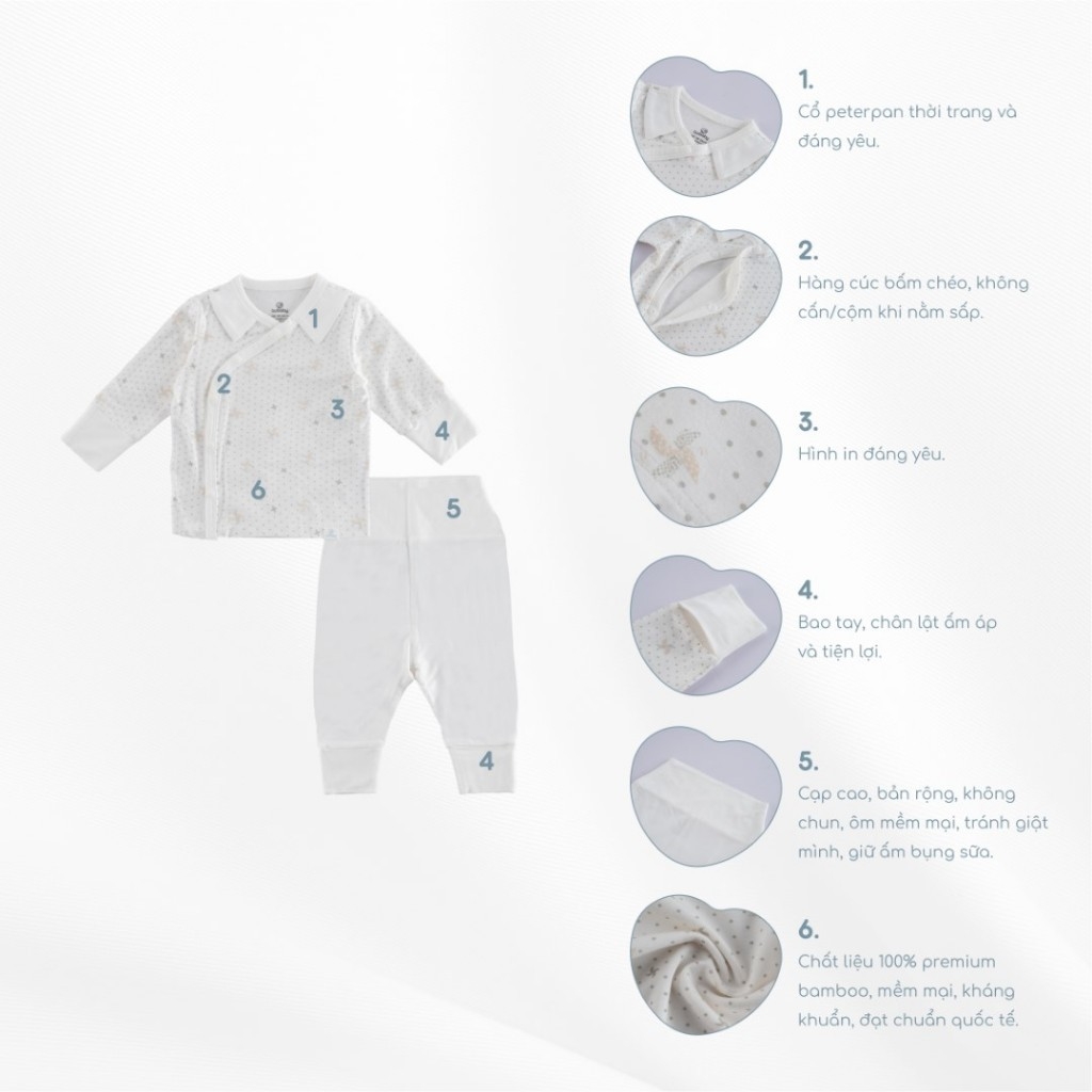 BU Baby sơ sinh - BBB1108PP Bộ dài tay cài chéo cổ Peter Pan Gami cho bé sơ sinh |Quần áo BU chính hãng NEW | DREAMLAND - Dạo chơi trong xứ sở mộng mơ 🍄 👫 🍀 🌿 NEW COLLECTION CÙNG CON ĐÓN THU SANG Bảng size tham khảo khi đặt hàng Newborn [3-4KG] 1-3M [4-5,9KG] 3-6M [5.5-7,5Kg] 6-9M [7-9Kg] 9-12M [8.5-10Kg] 12-18M [9.5-11Kg] 18-24M [10.5-12.5Kg] 2-3Y [12-14,5Kg] 3-4Y [14-16,5Kg] 4-5Y [16-23Kg] - HƯỚNG DẪN BẢO QUẢN VÀ SỬ DỤNG: Lộn trái sản phẩm khi giặt, giặt với sản phẩm cùng màu. Ưu tiên giặt tay, bóp nhẹ để loại bỏ nước và không vắt/vặn sản phẩm để tránh sợi bai dão. Nếu sử dụng máy giặt, sử dụng nước lạnh ở chế độ nhẹ nhàng Bạn nên cài lại mọi khuy, cúc và khóa kéo để tránh xù. #bu baby #bubaby #bubabybetrai #bubabybegai #bubabysiro #bubabymuahe #quanaomuahechobe #quanaochobememmat #quanaobetrai #quanaobegai #nous #vaisoitre #quanaovaisoitre #bubabychinhhang #bubabyofficial #bubabystore #bubabyofficialstore #bubabyvietnam #bubabymall #bubabyhanoi