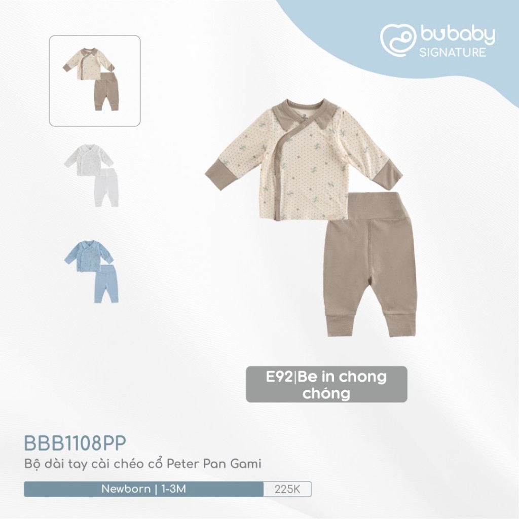 (0-3M) BU Baby sơ sinh - BBB1108PP Bộ dài tay cài chéo cổ Peter Pan Gami cho bé sơ sinh
