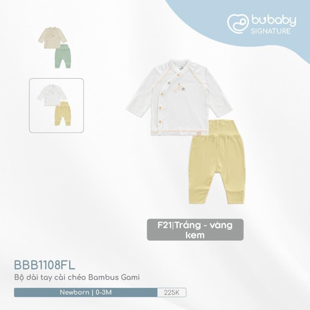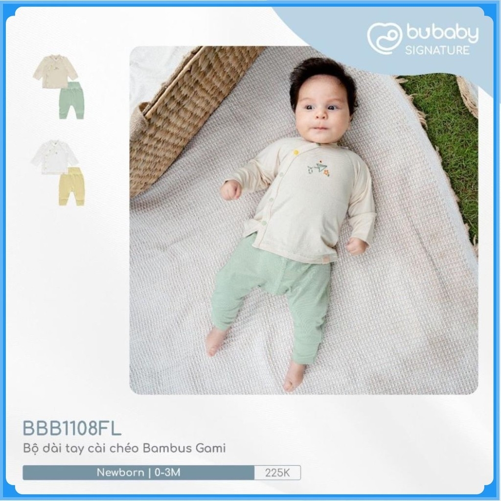 (0-3M) Bubaby BBB1108FL Bộ dài tay cài chéo Bambus Gami - Bu baby sơ sinh