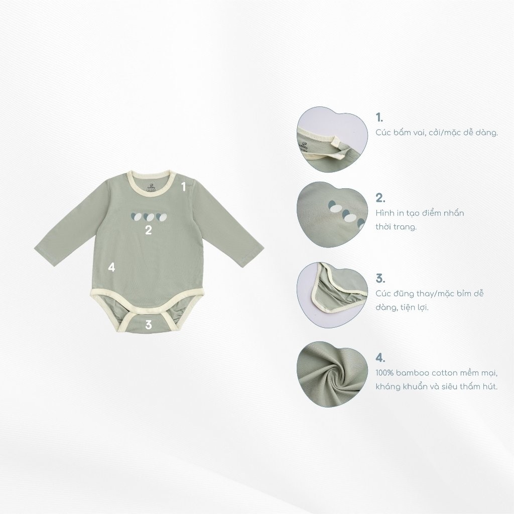 (1-12M) Bubaby Body chip dài tay cài vai Gloute BBC210103 - Bubaby sơ sinh