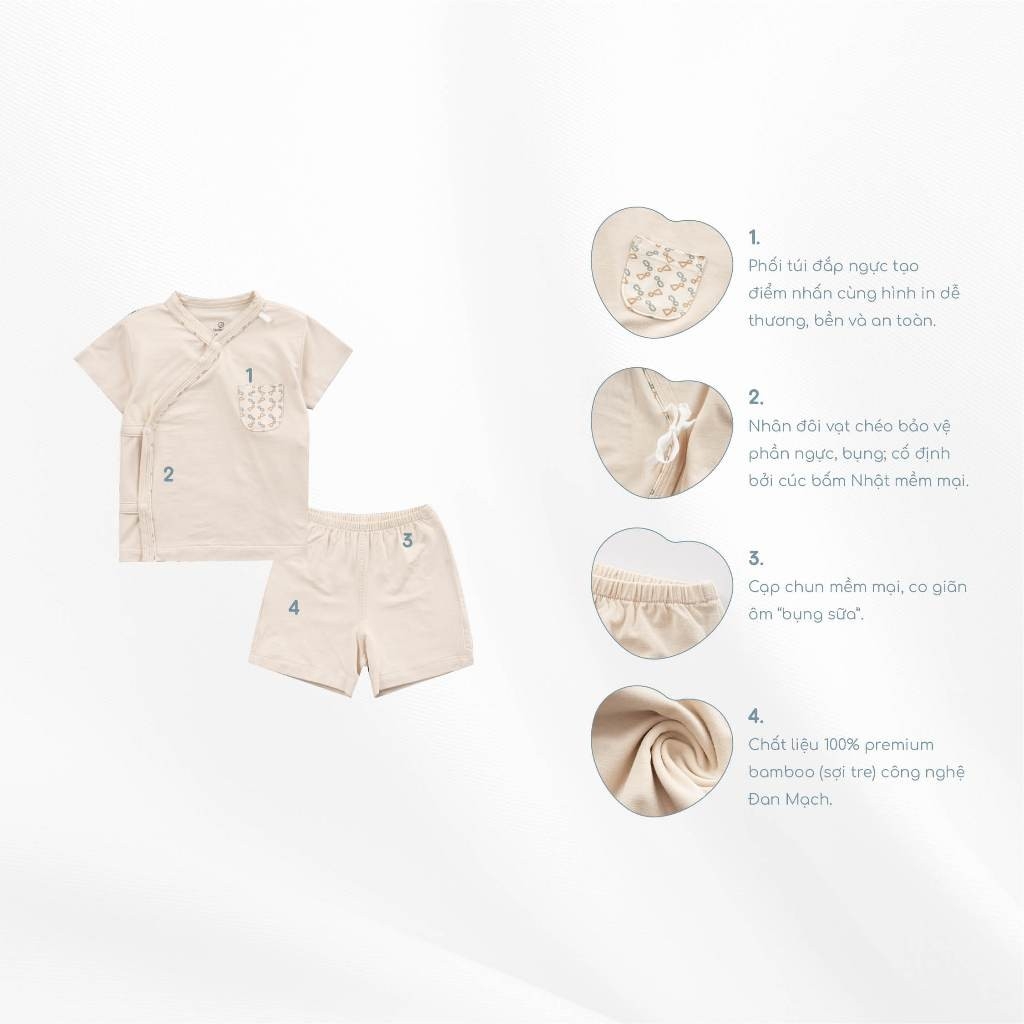 (1-3M) Bộ ngắn tay cài chéo dễ thương mềm mại, thoải mái cho bé - Bambus BBB130802 | Quần áo BuBaby chính hãng