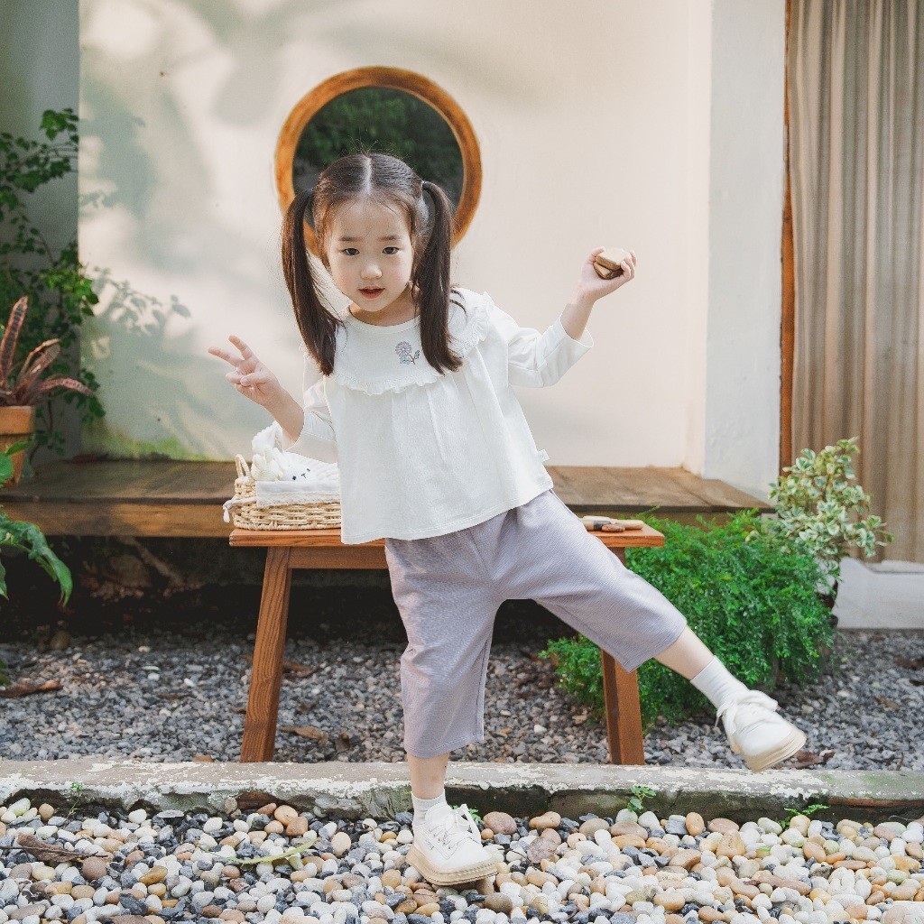 (12M-5Y) Bộ dài tay cài sau Bèo ngực BCT1110BN Cotton Slub cho bé gái - Quần áo BU Baby chính hãng