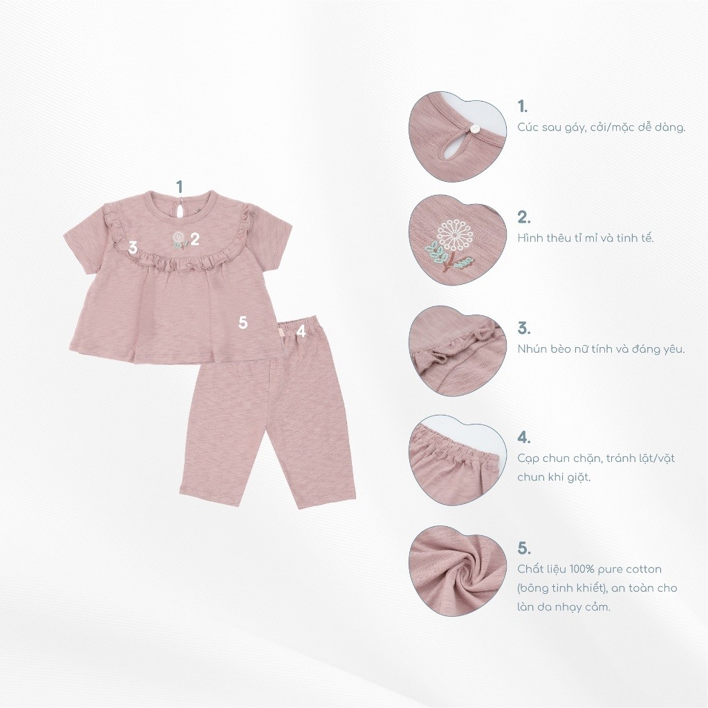 (12M-5Y) Bộ ngắn tay cài sau BCT1310BN Bèo ngực Cotton Slub Mimo cho bé gái - Quần áo BU Baby chính hãng