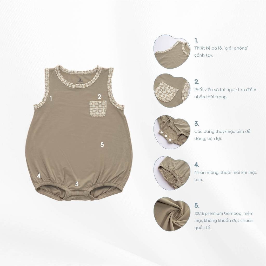 (1M-12M) Bộ đồ liền thân sát nách cổ tròn Túi ốp Bambus Iconic 2 - Bambus BBB2404A1 | Quần áo chính hãng BuBaby