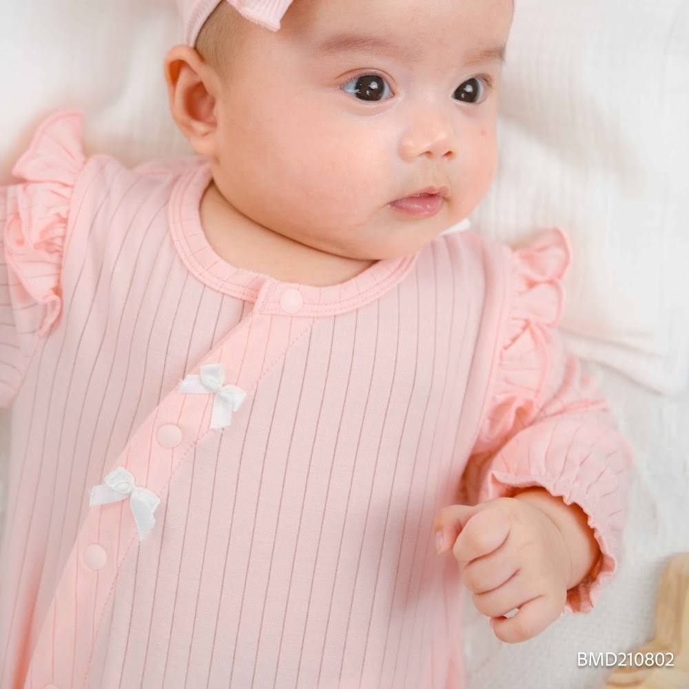 (1M-12M) Body chip dài tay cài chéo cho bé gái Bubaby Molist - BMD210802| Quần áo BU Baby chính hãng