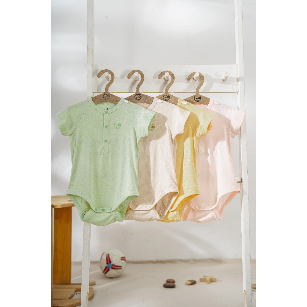 (1M-12M) Body chip ngắn tay raglan cổ trụ Bubaby Bambus - BBB230301 | Quần áo BU Baby chính hãng