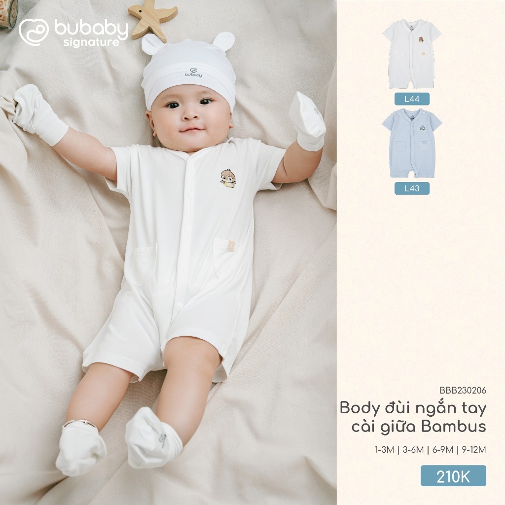 (1M-12M) Body đùi ngắn tay cài chéo, cài giữa Bambus bé trai bé gái BBB230803 BBB230205 BBB230206 | Quần áo chính hãng