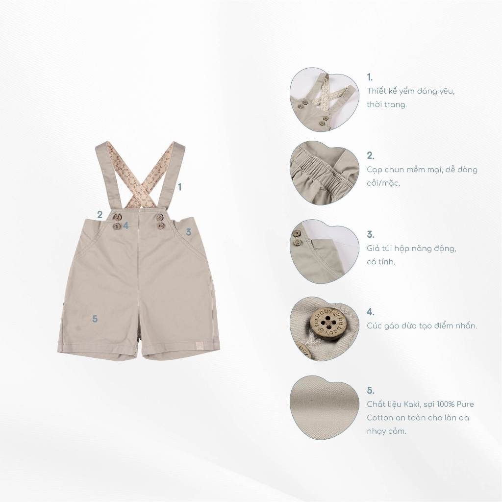(1Y-5Y) Quần yếm đùi kaki cap chun cho bé - Quần áo BuBaby Kaki BCT433202
