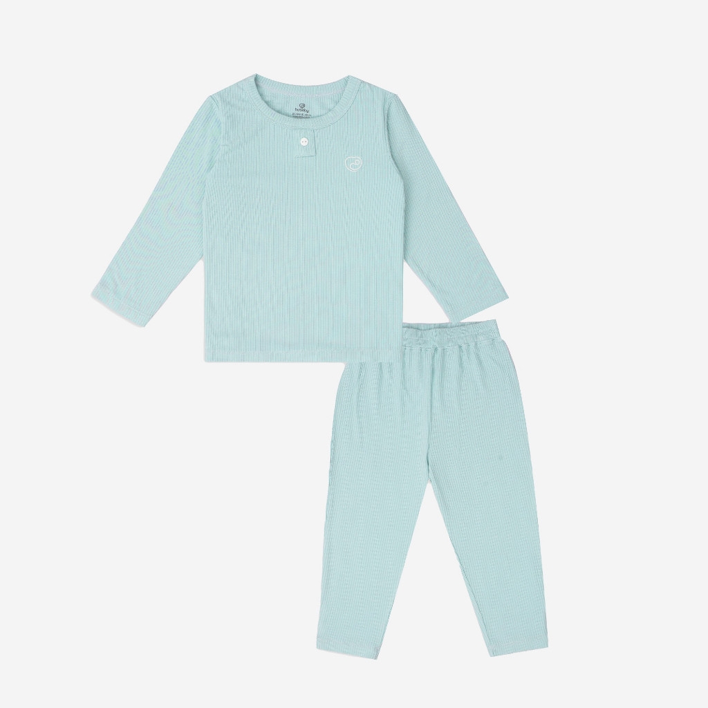 (6M-3Y-Xanh bạc hà) Bộ quần áo dài tay cổ trụ BuBaby cho bé chất liệu sợi gỗ sồi - Molist BMD110300 BPN110301