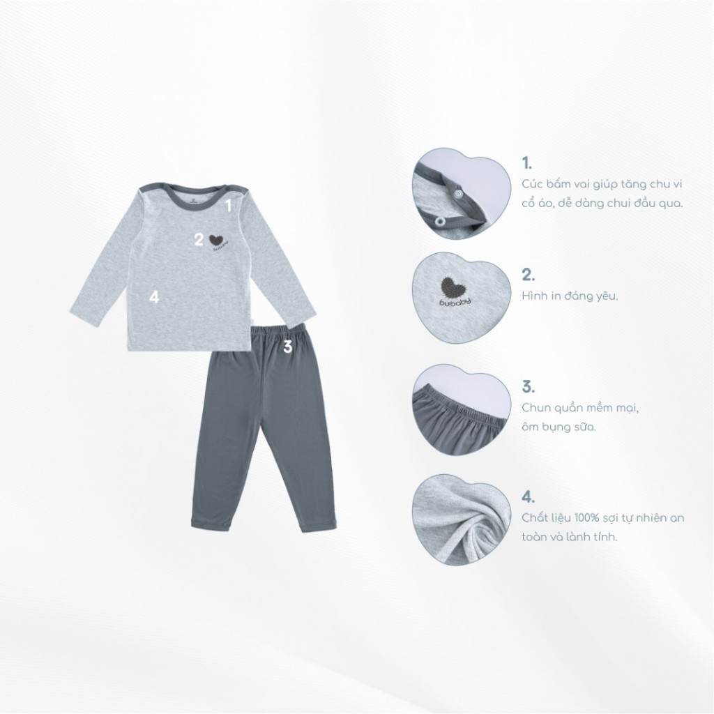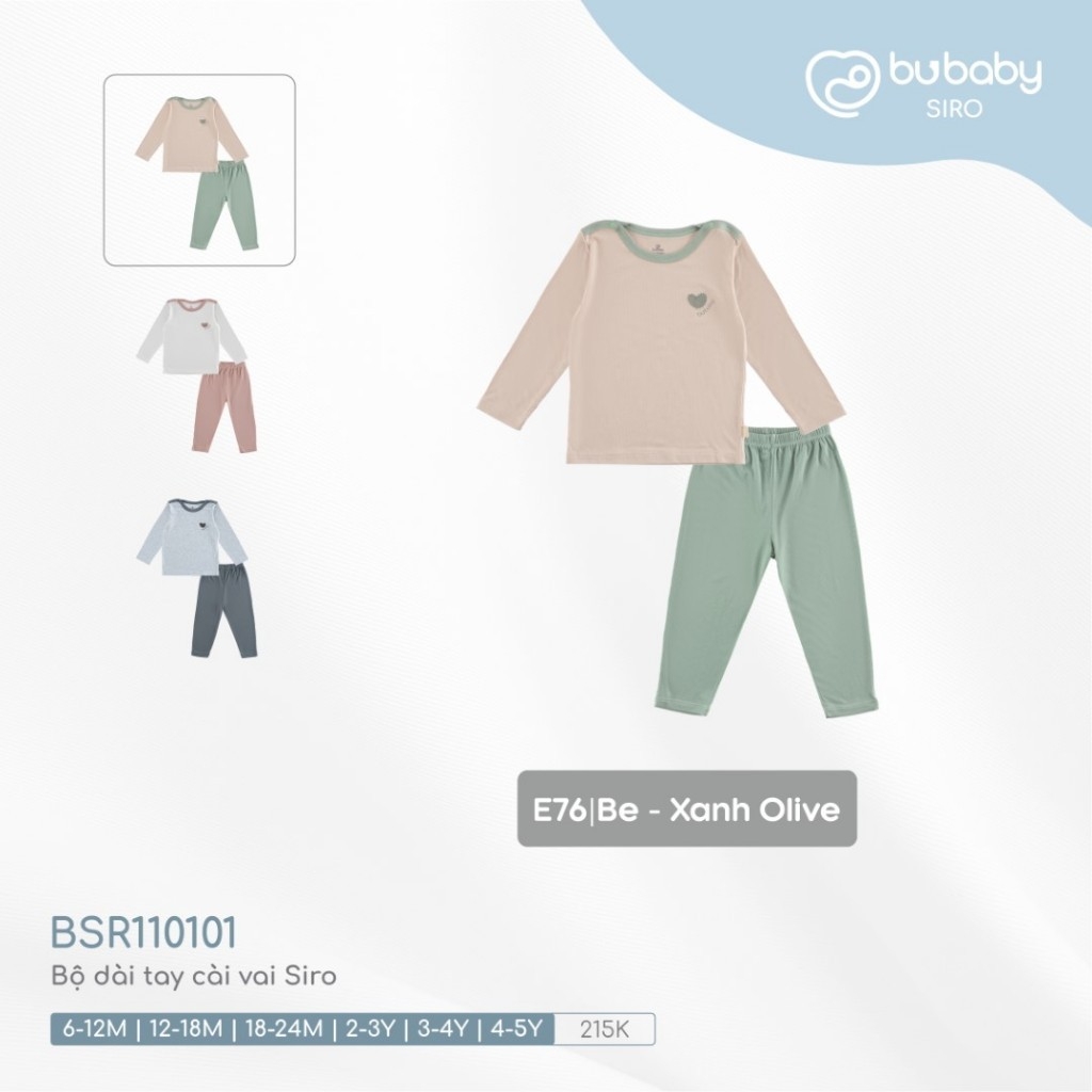 (6M-5Y) Bộ dài tay cài vai BSR110101 Siro - Bu baby cho bé gái - Bu baby cho bé trai - Quần áo Bu baby