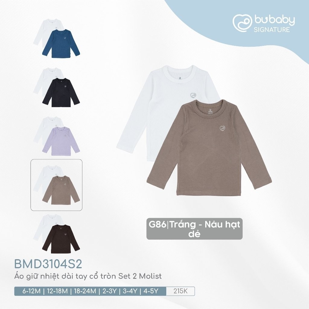 (6M - 5Y) Set 2 Áo giữ nhiệt dài tay cổ tròn BMD3104S2 - Bu baby bé trai - Bu baby bé gái - Áo giữ nhiệt cho bé