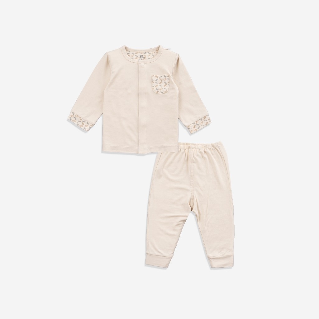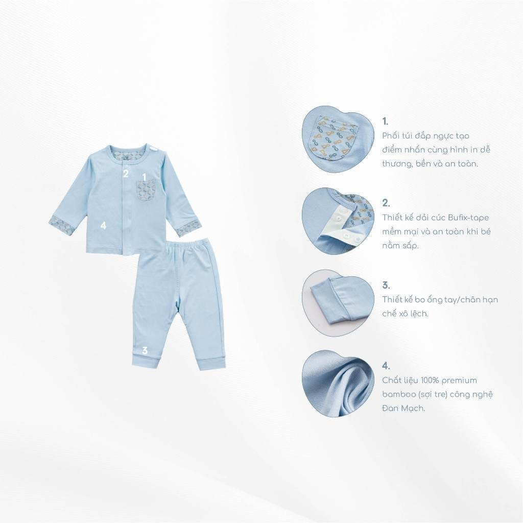 Bộ dài tay cài giữa cho bé sơ sinh vải sợi tre mểm mại - Bambus BBB110201 | Quần áo BuBaby chính hãng