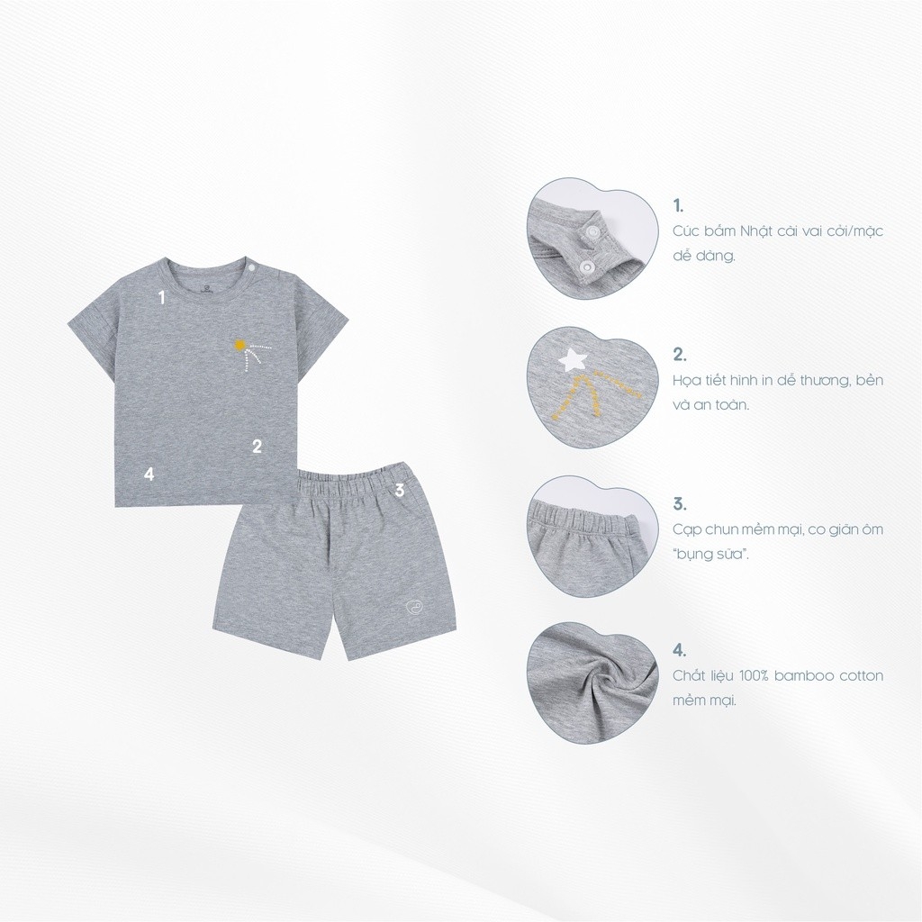 Bộ quần áo ngắn tay cài vai Twinkle cho bé BuBaby