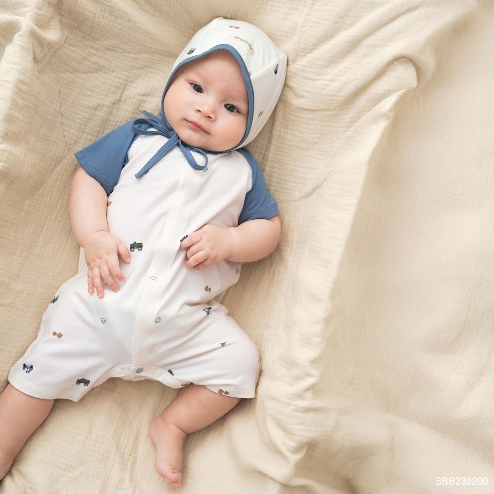 BU Baby (0M-12M) Body đùi ngắn tay cài giữa Little Car Bamboo SBB230200 | Body Sơ sinh chính hãng