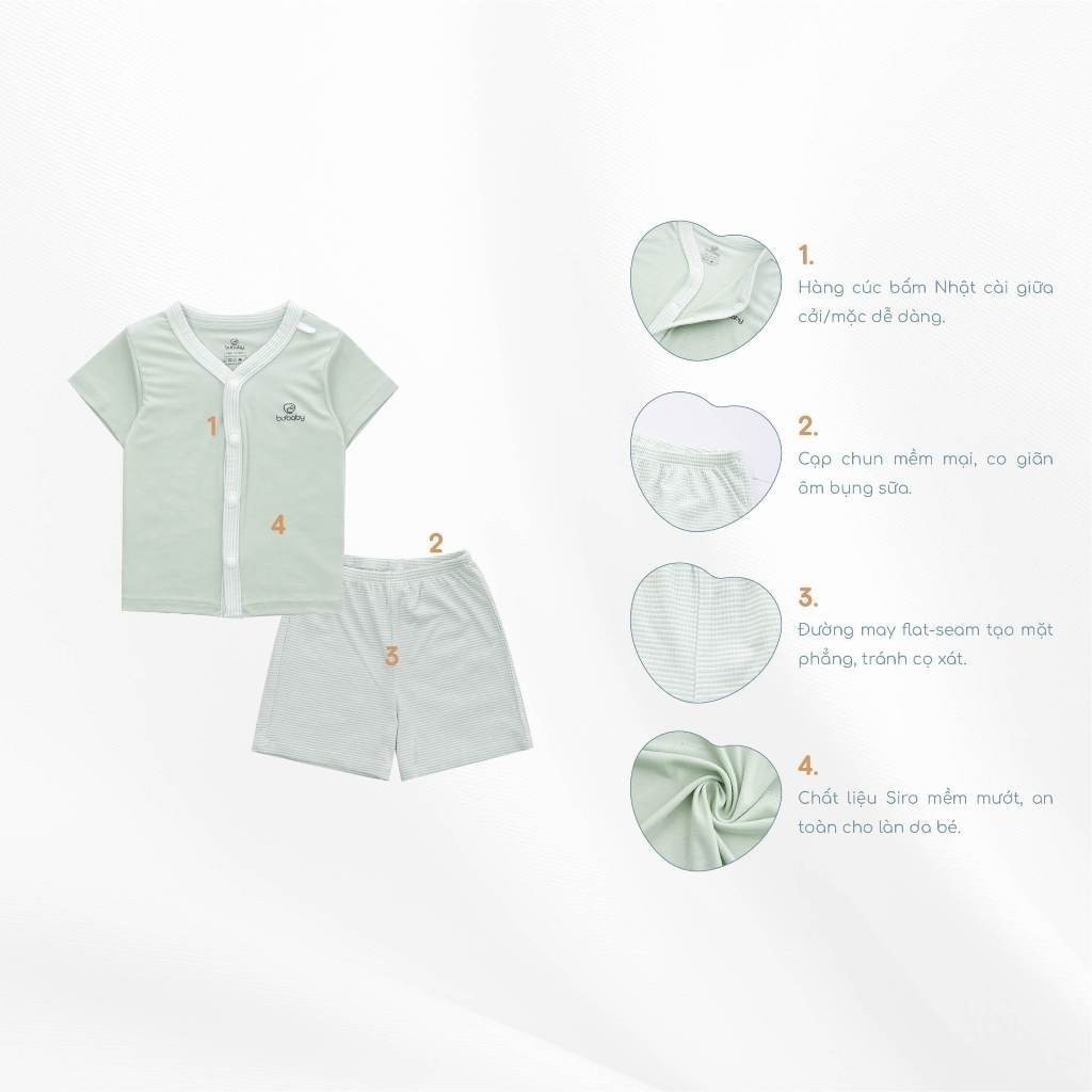Bộ ngắn tay cài giữa - Mã sản phẩm: BSR130202 - Chất liệu: BU Siro - Sản phẩm BuBaby được thiết kế và sản xuất hoàn toàn tại Việt Nam. Bộ cài giữa là trang phục thiết yếu đối với các em bé ngay từ khi lọt lòng. Thiết kế hàng cúc bấm Nhật chạy dài phía trước giúp ba mẹ có thể dễ dàng cởi/mặc dễ dàng. Cụp chun mềm mại, co giãn ôm bụng sữa. Đường may flar-seam tạo mặt phẳng, tránh cọ sát. Chất liệu Siro mềm mướt, an toàn cho làn da bé. ------------------------ HƯỚNG DẪN CHỌN SIZE SẢN PHẨM BuBaby Bảng size dành cho các sản phẩm BuBaby. Để được tư vấn chi tiết nhất, đừng ngại nhắn tin qua chat để được BuBaby tư vấn miễn phí và giải đáp thắc mắc ba mẹ nhé!#bubabysale #bu #hrnee #nous