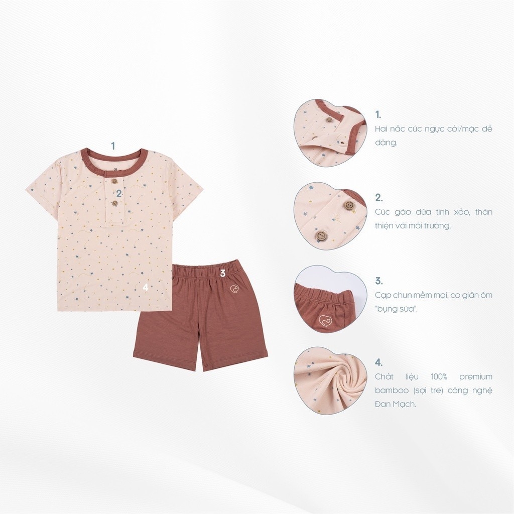 Bộ quần áo ngắn tay cổ trụ Twinkle cho bé BuBaby - Mã sản phẩm: BBB130300 - Chất liệu: BU Bambus - sợi tre - Sản phẩm BuBaby được thiết kế và sản xuất hoàn toàn tại Việt Nam. Tất cả sản phẩm đều đạt Chứng nhận OEKO-TEX 100 cấp độ 1 (cấp độ cao nhất về sản phẩm dệt may an toàn cho trẻ sơ sinh & trẻ nhỏ). Bộ ngắn tay cổ trụ là trang phục thiết yếu dành cho các bé từ 12 tháng tuổi. Thiết kế 2 nấc cúc ngực cởi/mặc dễ dàng. Cúc gáo dừa tinh xảo, thân thiện môi trường, tạo điểm nhấn thời trang. Cạp chun mềm mại, co giãn ôm bụng sữa. Đường may flat-seam tạo mặt phẳng, tránh cọ xát. Chất liệu Siro mềm mướt, an toàn cho làn da bé. ------------------------ HƯỚNG DẪN CHỌN SIZE SẢN PHẨM BuBaby Bảng size dành cho các sản phẩm BuBaby. ----------------------- HƯỚNG DẪN BẢO QUẢN VÀ SỬ DỤNG - Nên giặt nước sản phẩm thay vì giặt khô. - Lộn trái sản phẩm khi giặt, giặt với sản phẩm cùng màu. - Ưu tiên giặt tay, bóp nhẹ để loại bỏ nước và không vắt/ vặn sản phẩm để tránh sợi bai dão. - Nếu sử dụng máy giặt, sử dụng nước lạnh ở chế độ nhẹ nhàng. Bạn nên cài lại mọi khuy, cúc và khóa kéo để tránh xù, ----------------------- QUY ĐỊNH BẢO HÀNH, ĐỔI TRẢ 1. Điều kiện áp dụng (trong vòng 07 ngày kể từ khi nhận sản phẩm): - Hàng hoá vẫn còn mới, chưa qua sử dụng và còn nguyên tag. - Hàng hoá bị lỗi hoặc hư hỏng do vận chuyển hoặc do nhà sản xuất. 2. Trường hợp được chấp nhận: - Hàng không đúng size, kiểu dáng như quý khách đặt hàng - Không đủ số lượng, không đủ bộ như trong đơn hàng 3. Trường hợp không đủ điều kiện áp dụng chính sách: - Quá 07 ngày kể từ khi Quý khách nhận hàng - Gửi lại hàng không đúng mẫu mã, số lượng như đơn đã đặt. - Các lỗi do đặt hàng nhầm lẫn từ phía khách hàng. Để được tư vấn chi tiết nhất, đừng ngại nhắn tin qua chat để được BuBaby tư vấn miễn phí và giải đáp thắc mắc ba mẹ nhé! #BuBaby #quan #ao #bo_quan_ao_be_trai #bo_quan_ao_be_gai #do_so_sinh #quan_ao_so_sinh #bo_so_sinh #bodysuit #body_dai_cho_be #bubabysale #bu