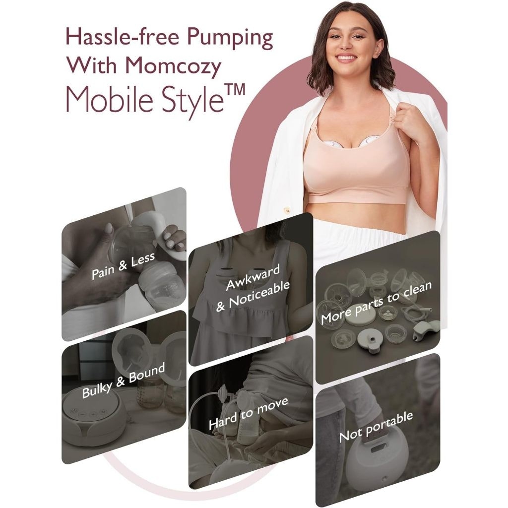 - Máy hút sữa đeo Momcozy Mobile Style dựa trên khuôn cốc áo ngực bán chạy nhất, phù hợp tốt hơn với đường cong của ngực. Thiết kế công thái học cho phép bạn tận hưởng tự do hút sữa ở bất cứ đâu với mức độ kín đáo cao.