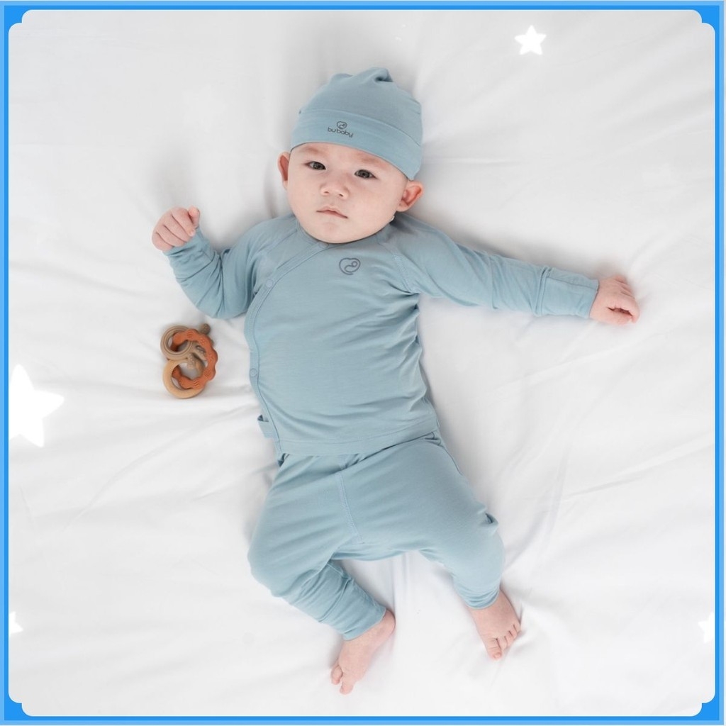 Bộ dài tay cài chéo quần dài là trang phục quan trọng nhất đối với các em bé ngay từ khi lọt lòng. Thiết kế nhân đôi vạt chéo bảo vệ phần ngực, bụng; được cố định bởi cúc bấm Nhật mềm mại. Bao tay chân lật tiện lợi, dễ dàng thao tác. Cạp chun mềm mại, co giãn ôm "bụng sữa". Đường may flat-seam tạo mặt phẳng gần như tuyệt đối, tránh cọ xát. Quần đáp đũng thoải mái khi bé mặc bỉm. Chất liệu 100% premium bamboo (sợi tre) công nghệ Đan Mạch.