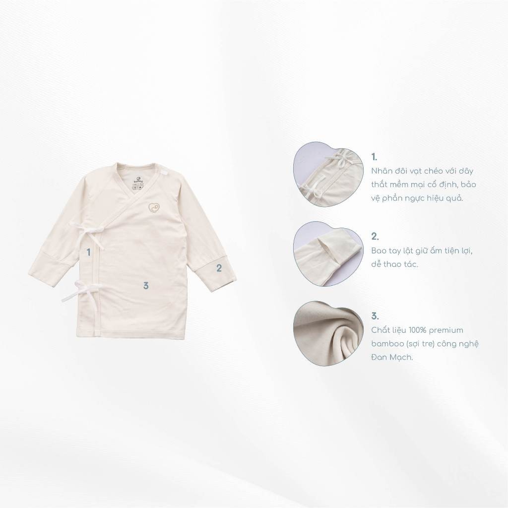 Set 2 áo dài tay buộc dây chéo Iconic cho bé sơ sinh chất liệu sợi tre - Bambus BBB3108NS| Quần áo BuBaby chính hãng